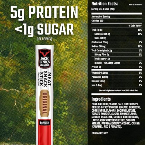 - GOOD SOURCE OF PROTEIN: The perfect portable on-the-go meat snack with 5 grams of protein per serving. Jack Link’s Classic Original Beef Sticks are the protein snack you need to help you power thru your day anytime, anywhere.